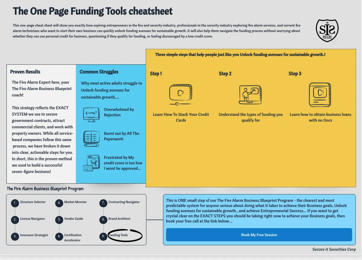 The Fire Alarm Business Blueprint is the ultimate step-by-step program designed to help aspiring entrepreneurs, skilled technicians, and security professionals successfully start and scale their own fire alarm and security company in just 90 days – even with limited capital or no prior business experience.